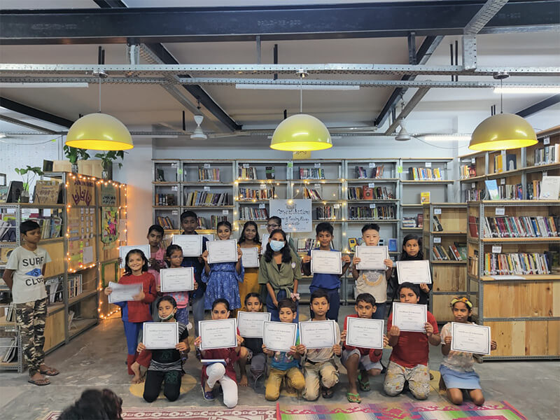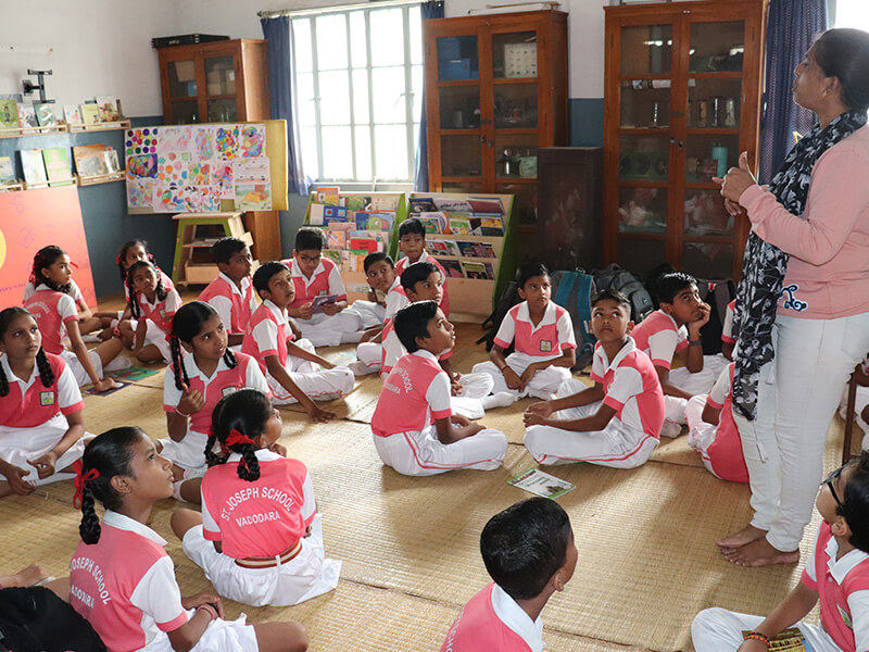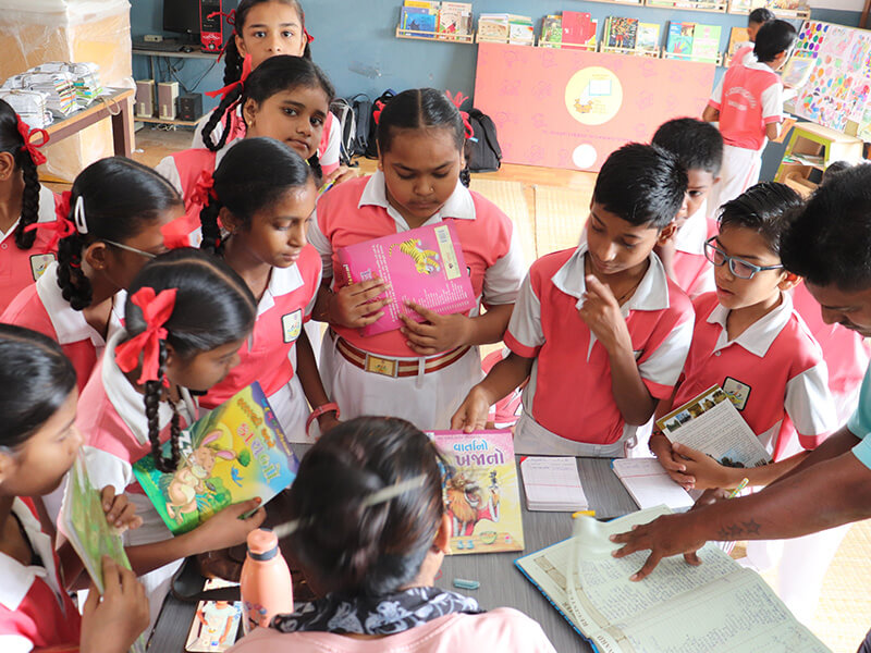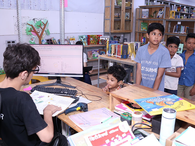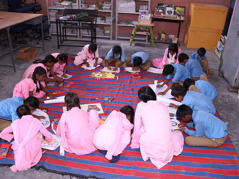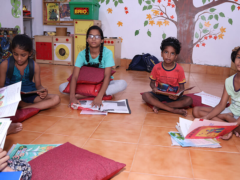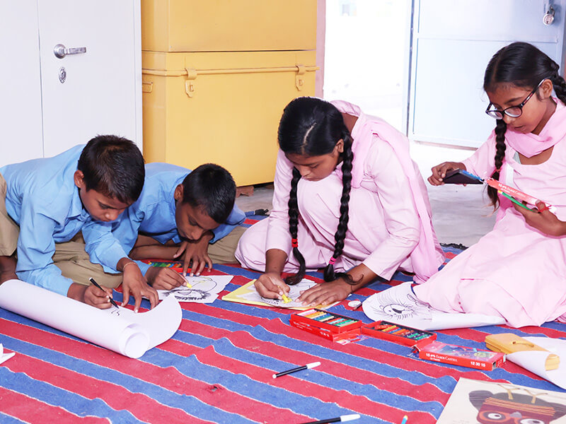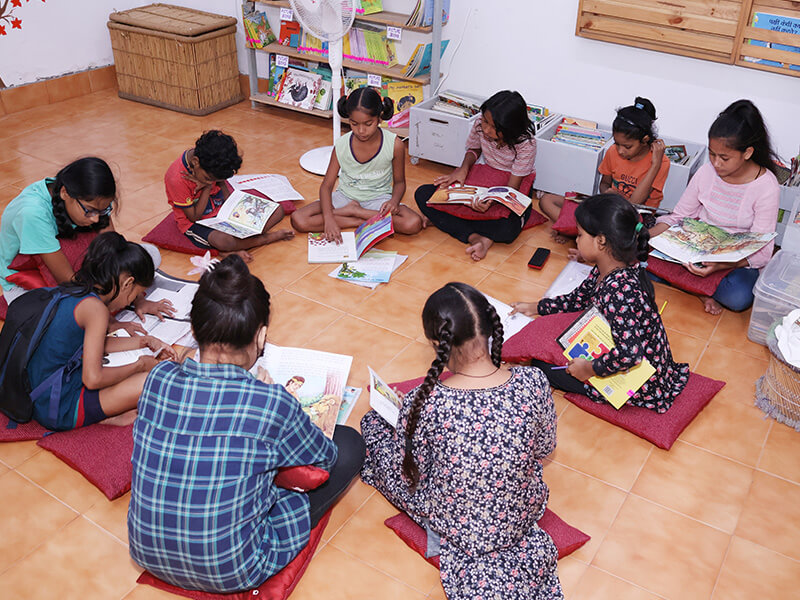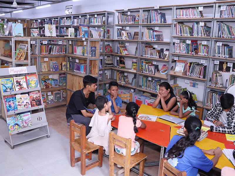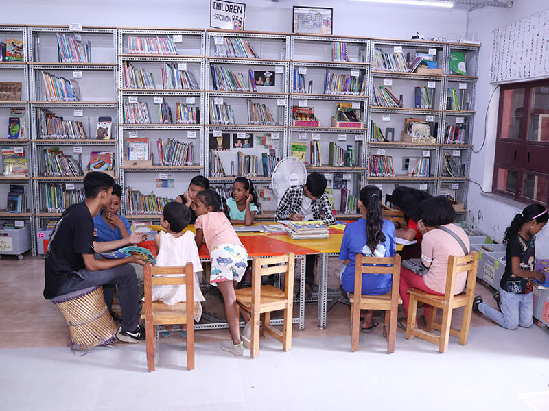 The Foundation partners with organisations working in the areas of education to set up child-friendly libraries in schools and community centres to provide access to books and create a culture of reading among children from rural and marginalized communities. It also works towards promoting community ownership by building the capacity of teachers and librarians to manage the library and conduct reading activities for children. All of this helps increase reading levels, promoting joy of reading through a number of activities such as read-alouds, storytelling and art and crafts.